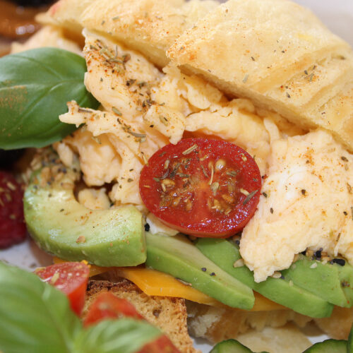 • ein herzhaftes Croissant mit Avocado & Rührei,